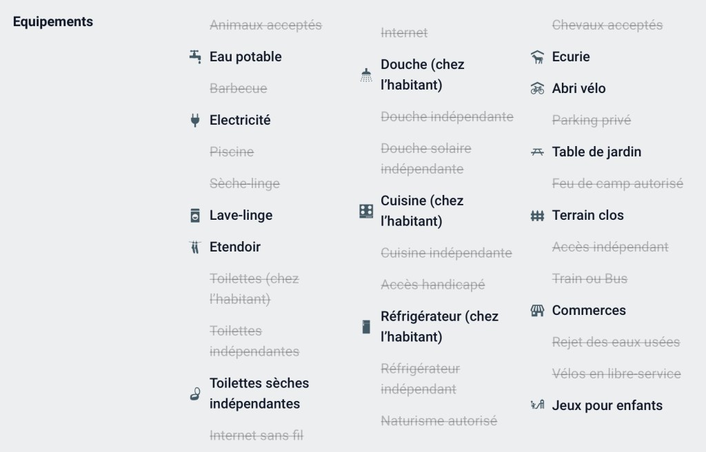 Le lieu dispose donc d’une page produit spécifique où tout est indiqué de façon explicite au campeur.