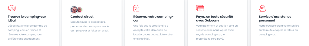 Comme la plupart des plateformes proposant la location de véhicules de loisir, cette plateforme propose grossièrement les mêmes prestations que ses concurrents :